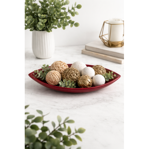 The Burgundy Oval Shape Ceramic Décor Dish is a boat-shaped oranmental bowl suitable for home and office decor. Either potpurries or fancy balls can be placed on it to add visual appeal wherever it is placed in your space.
